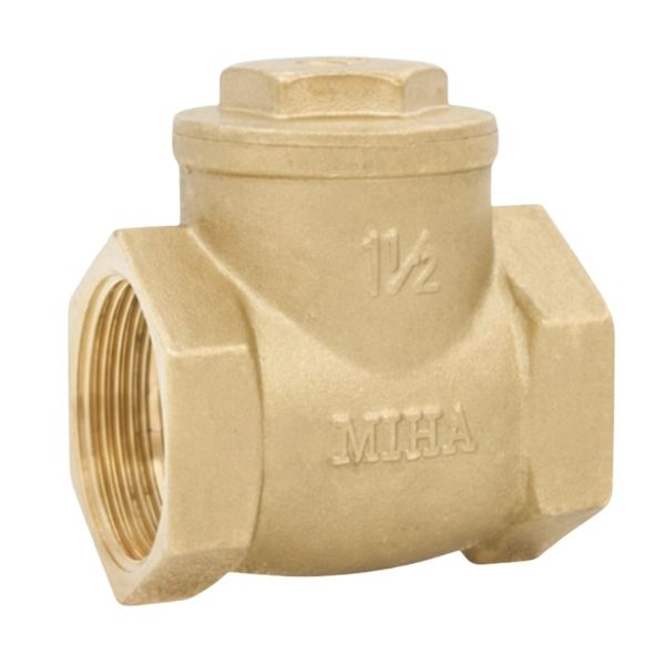 - Thân van bằng đồng thau: Thân van 1 chiều lá Miha DN40 có màu vàng đặc trưng của đồng, bề mặt được xử lý đều, giúp tăng độ bền cơ học và khả năng chống ăn mòn trong môi trường nước