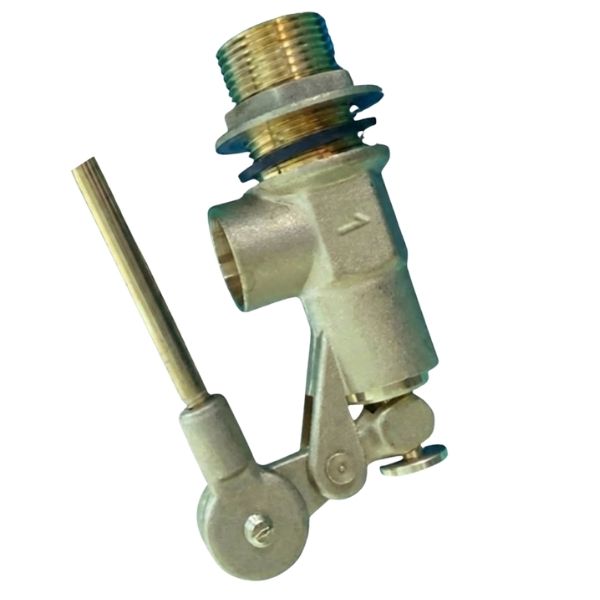 Van phao MBV DN25 được thiết kế với phần thân van đồng thau kích thước lớn, đóng vai trò trung tâm trong cơ cấu kiểm soát mực nước. Bề mặt thân có độ hoàn thiện tốt, ren ngoài gia công sắc nét và đi kèm gioăng làm kín, giúp việc lắp đặt vào thành bồn trở nên thuận tiện đồng thời đảm bảo độ kín nước trong quá trình vận hành.